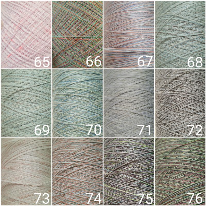 Giới thiệu (65-76) Sợi cotton Hàn màu loang, chập 0.8mm, đan móc áo mùa hè