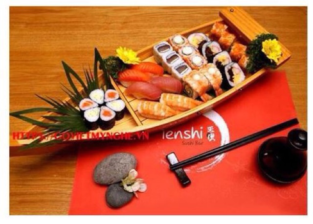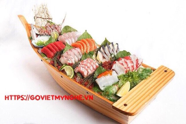 + Khay thuyền gỗ được dùng để trang trí Sushi & Sashimi, Lẩu Hải Sản... phong cách trang trí ẩm thực đa dạng.