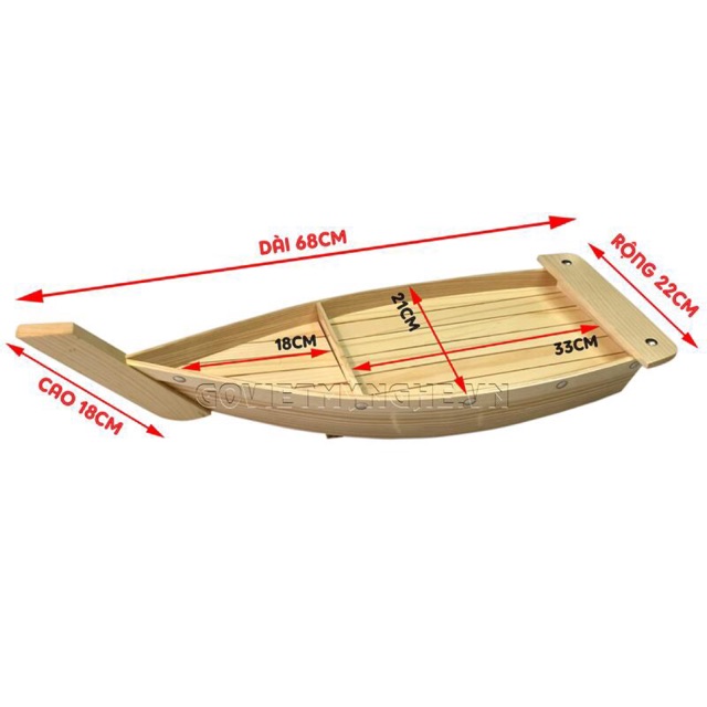 Giới thiệu [Dài 68cm - Hàng chuẩn Nhật] Khay thuyền gỗ trang trí đựng sushi sashimi - khay thuyền gỗ sushi thuyền để setup lẩu