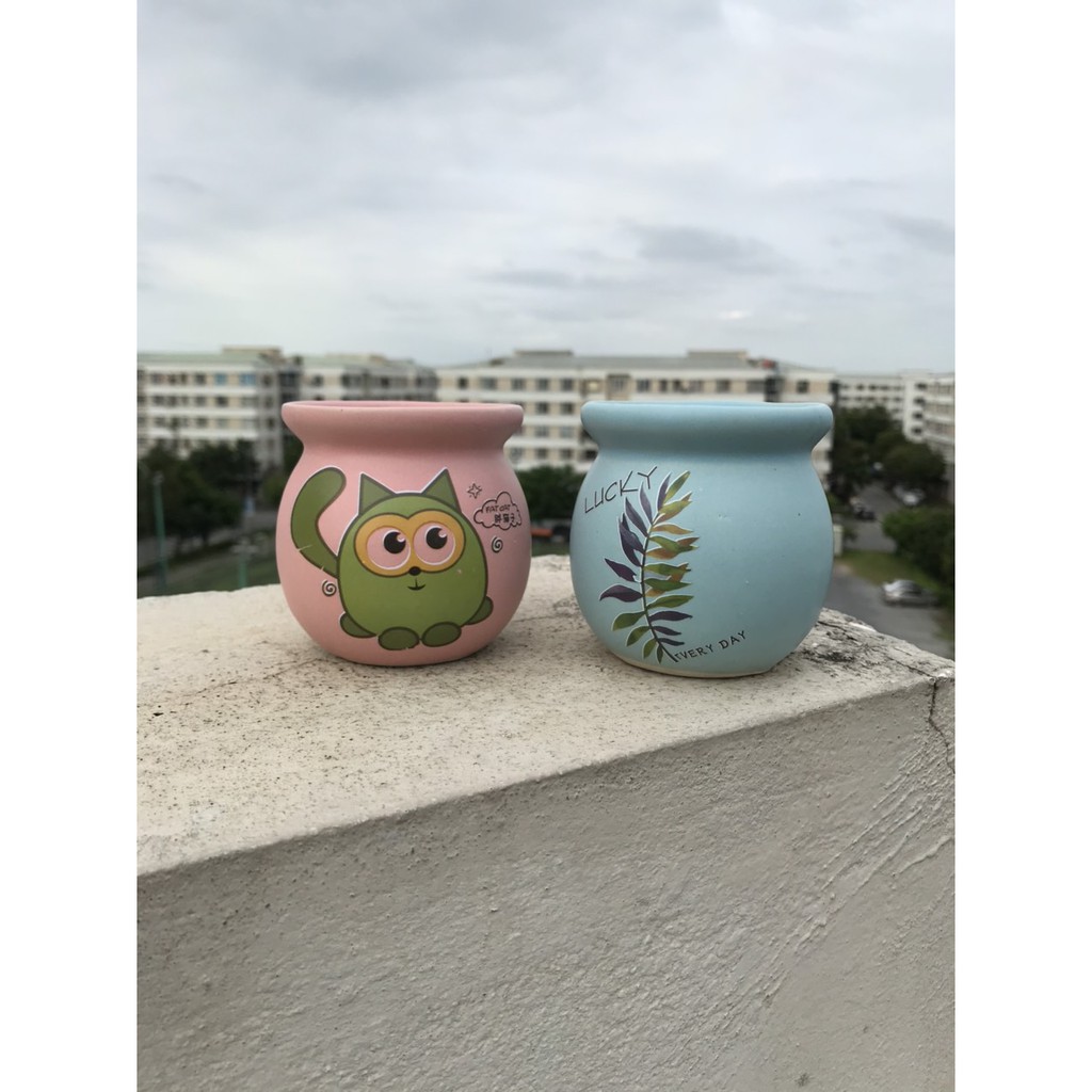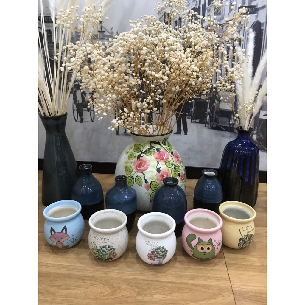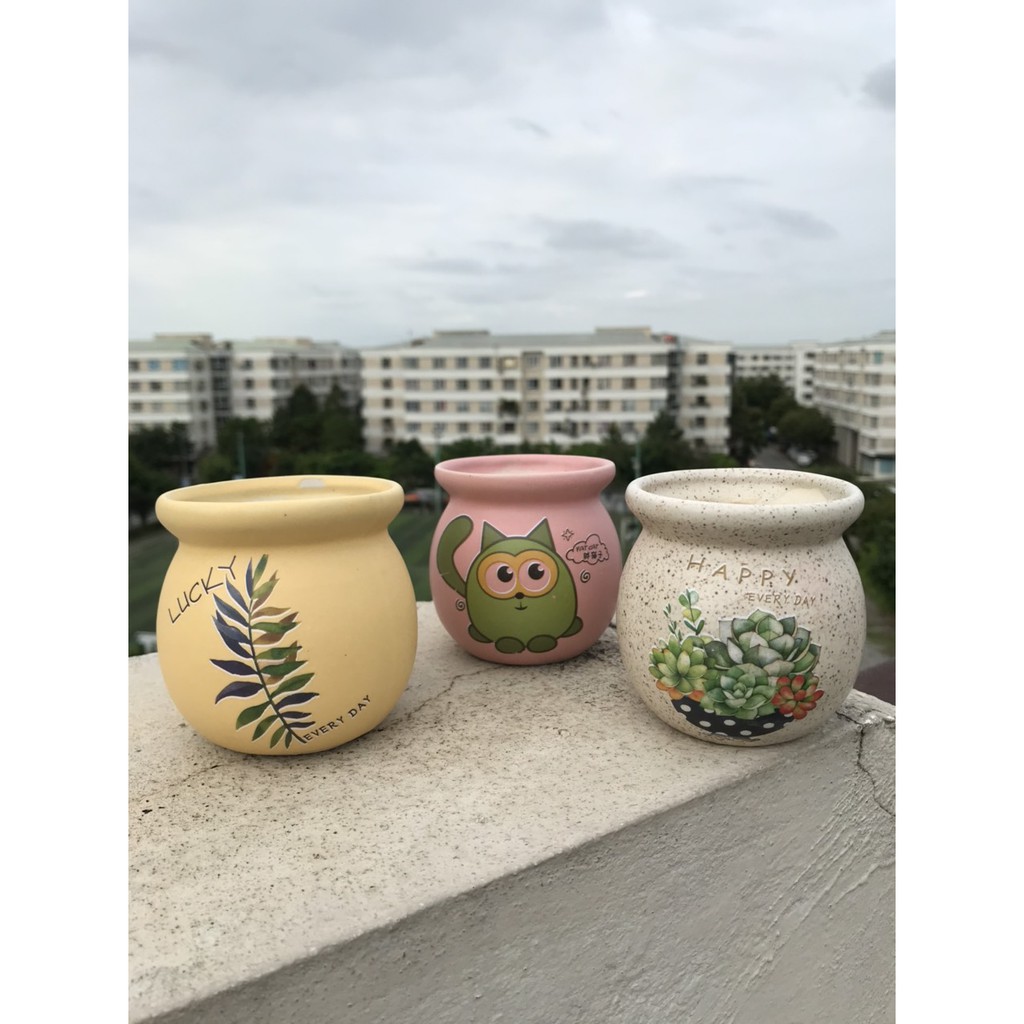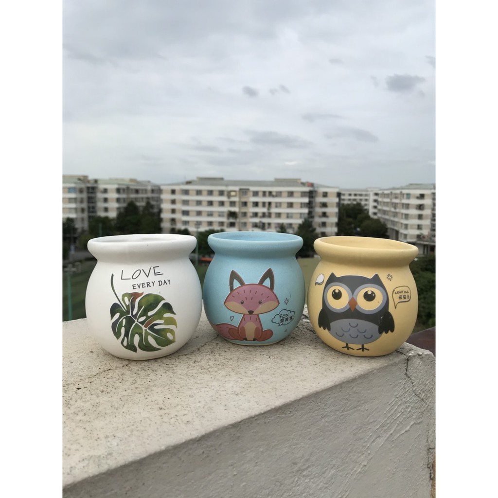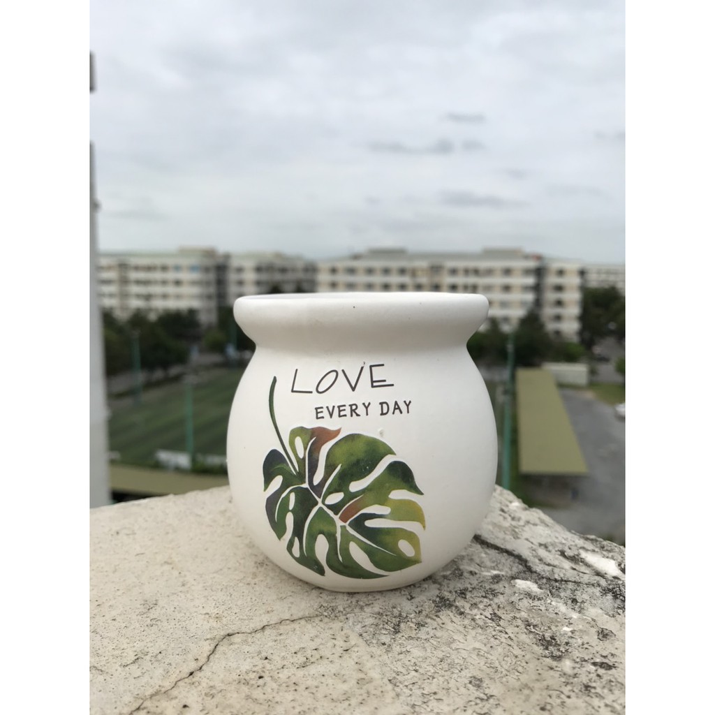 - Chậu men, in hình xinh xắn. Mang lại cảm giác sinh động và sang trọng.