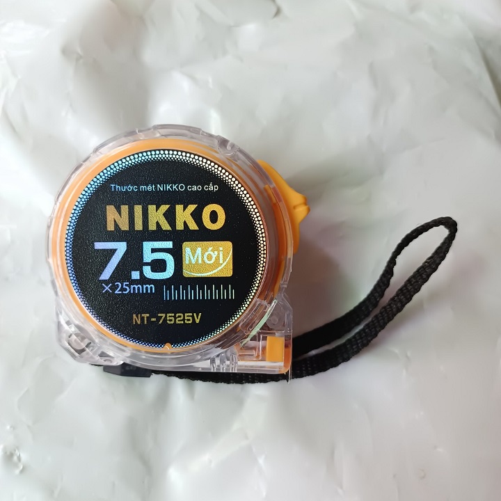 7.5mx25mm Thước Rút , Thước cuộn thép Nikko Cao CấpThước cuộn thép Nikko cao cấp với phần lá thước dài 7.5m, bề rộng là 25mm, kiểu dáng của thước nhỏ gọn nên có thể dễ dàng cất giữ và bỏ trong túi mang theo khi có việc cần xài tới. Được làm từ công nghệ hiện đại hàng đầu ở Nhật nên các vạch chia, số đo kết quả đều được khắc laser nên đảm bảo xài 1 thời gian lâu dài cũng không bị phai màu. Nhờ thước cuộn thép giá rẻ này có kiểu dáng nhỏ gọn >>> giúp người thợ sử dụng đo đạc ở nhiều nơi chật hẹp, khó di chuyển.