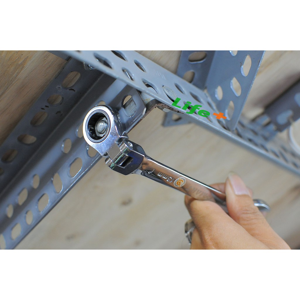 -Mỗi cờ lê có đầu mở khóa và đầu bánh cóc đều cùng số cỡ