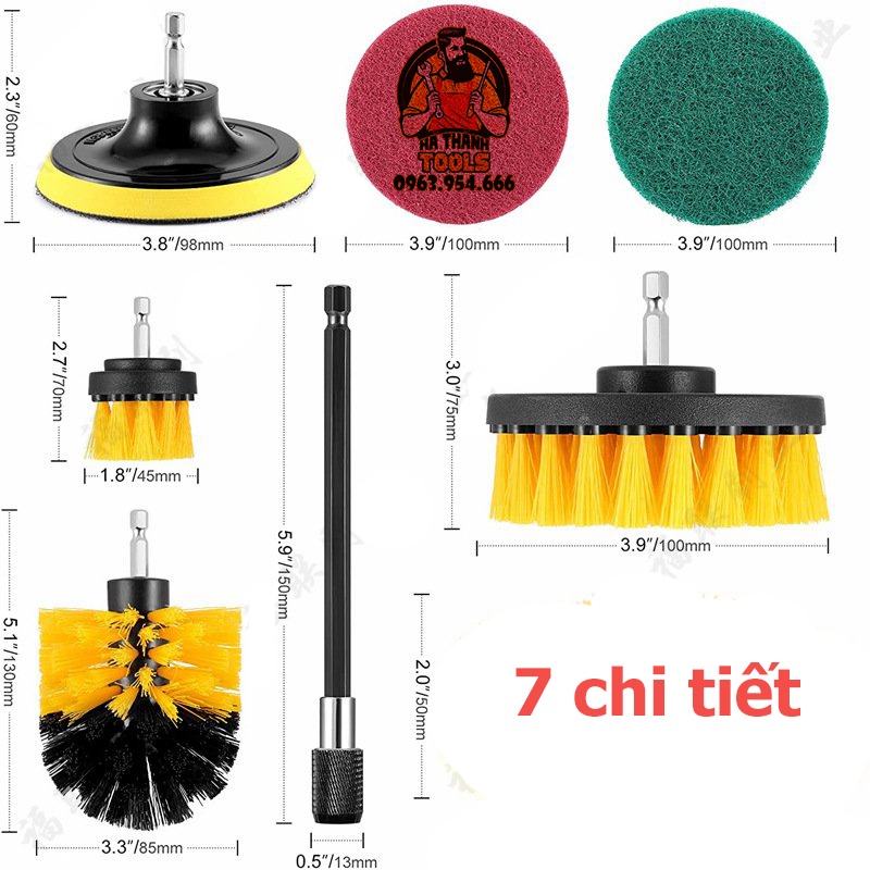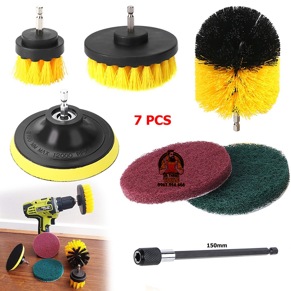 Bộ 7 Đầu Bàn Chải Gắn Máy Khoan - Dụng Cụ Vệ Sinh Nhà Cửa Nội Thất Đa Năng