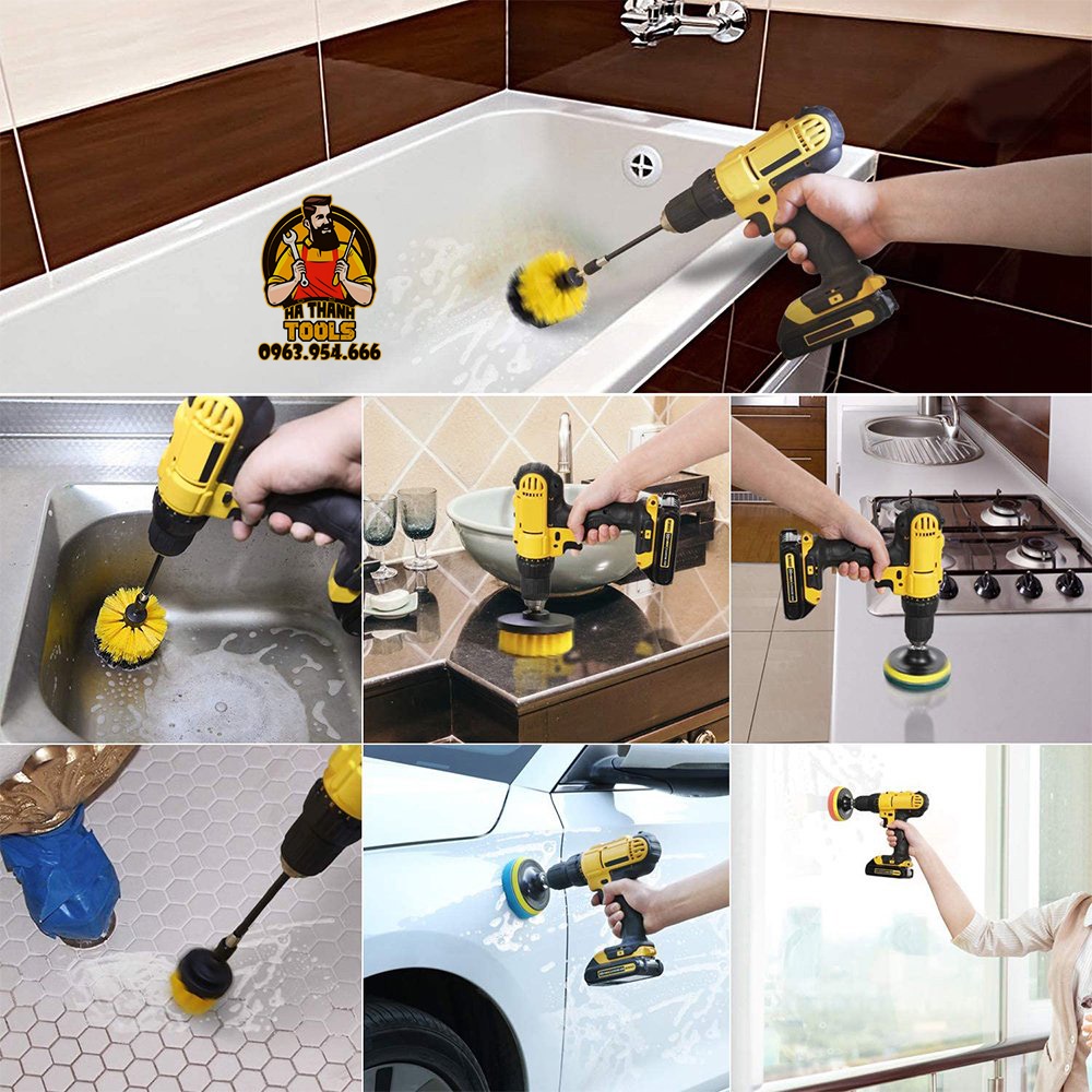 - Lời khuyên : Chỉ kết hợp cho máy bắt vít dùng pin hoặc dùng điện, nên dùng thêm hóa chất tẩy rửa để làm mềm vết bẩn trước
