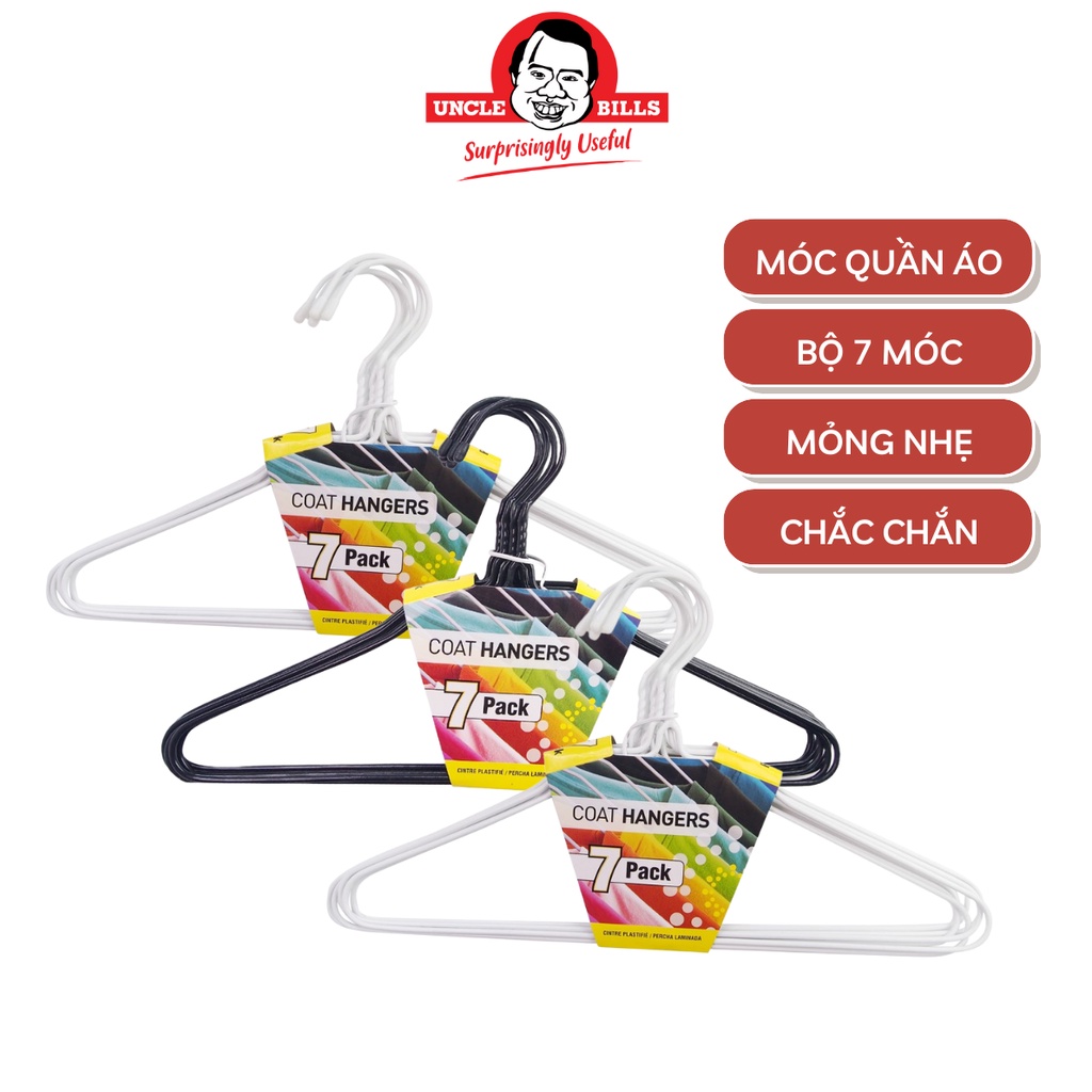 Nhà cửa & Đời sống > Sắp xếp nhà cửa > Mắc áo || 7 móc quần áo Uncle Bills BL0121 chất liệu thép bọc nhựa nhiều màu đẹp mắt tiện lợi không để lại vết hằn trên quần áoCòn hàng