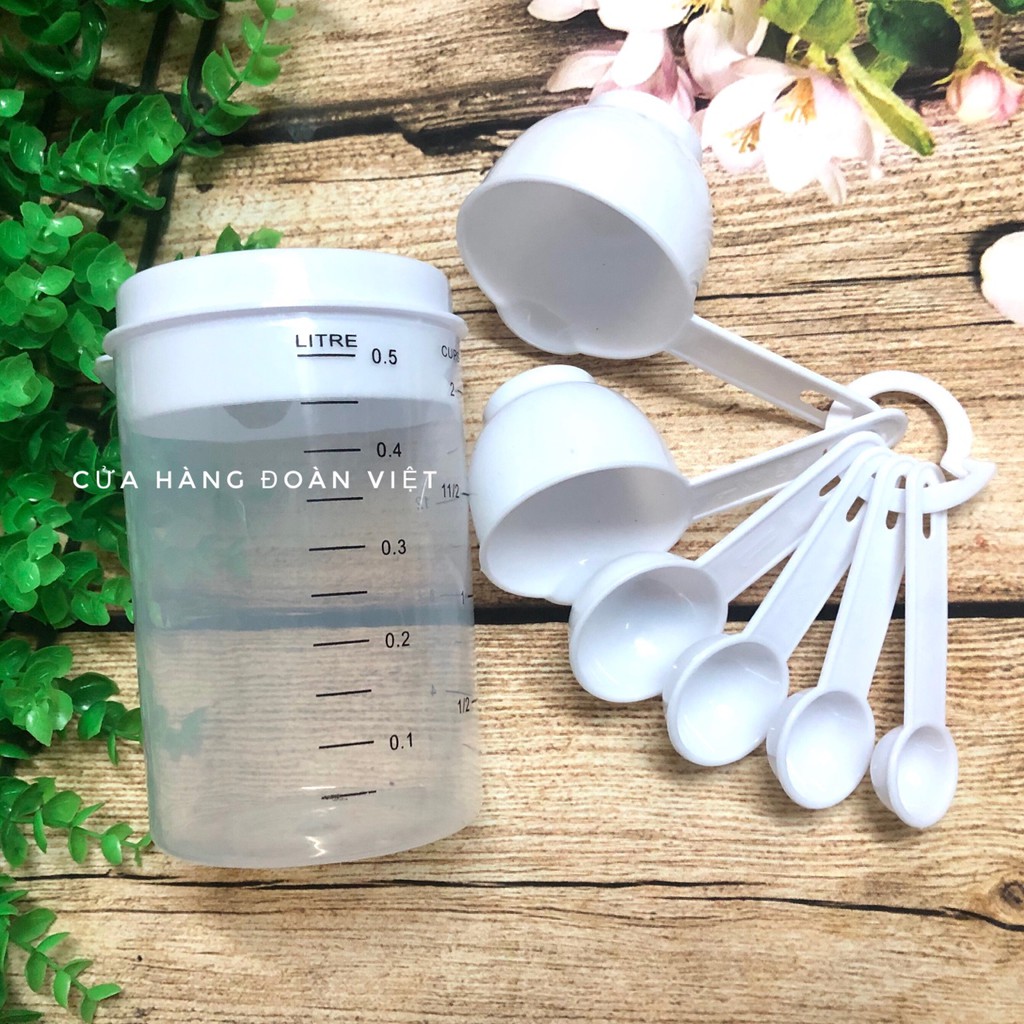 Sản phẩm gồm 1 ca đong 500ml + 6 Muỗng Đong