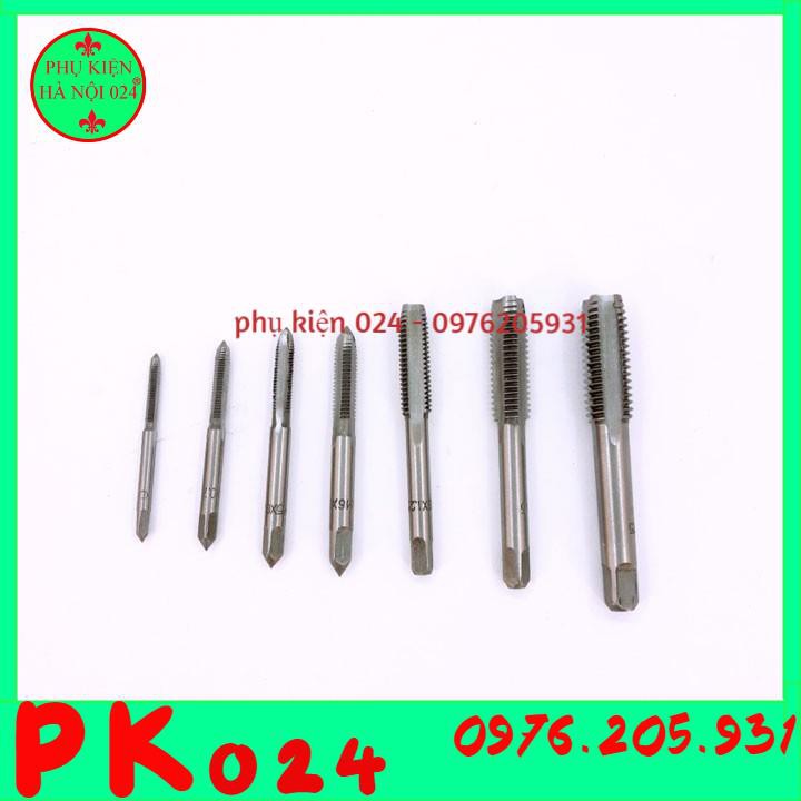 Bộ sản phẩm gôm 7 cây kích cỡ khác nhau: M3 - M12, M12x1.75, M10x1.5, M8x1.25, M6x1, M5x0.8, M4x0.7, M3x0.5.
