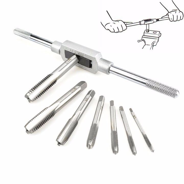 Nhà cửa & Đời sống > Dụng cụ & Thiết bị tiện ích > Dụng cụ > Khác || Bộ 7 mũi taro + Tay quay taro M3 - M12 dài 190mmCòn hàng
