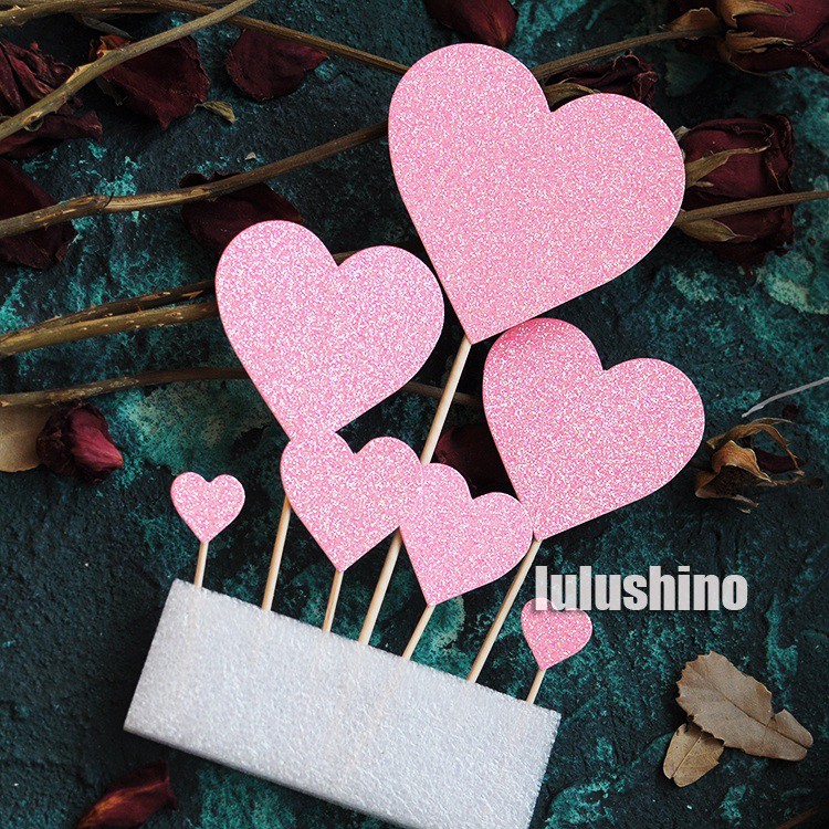 Nhà cửa & Đời sống > Dụng cụ nhà bếp > Dụng cụ nướng & trang trí bánh || 7 que cắm tim nhũ dùng để trang trí bánh sinh nhậtCòn hàng