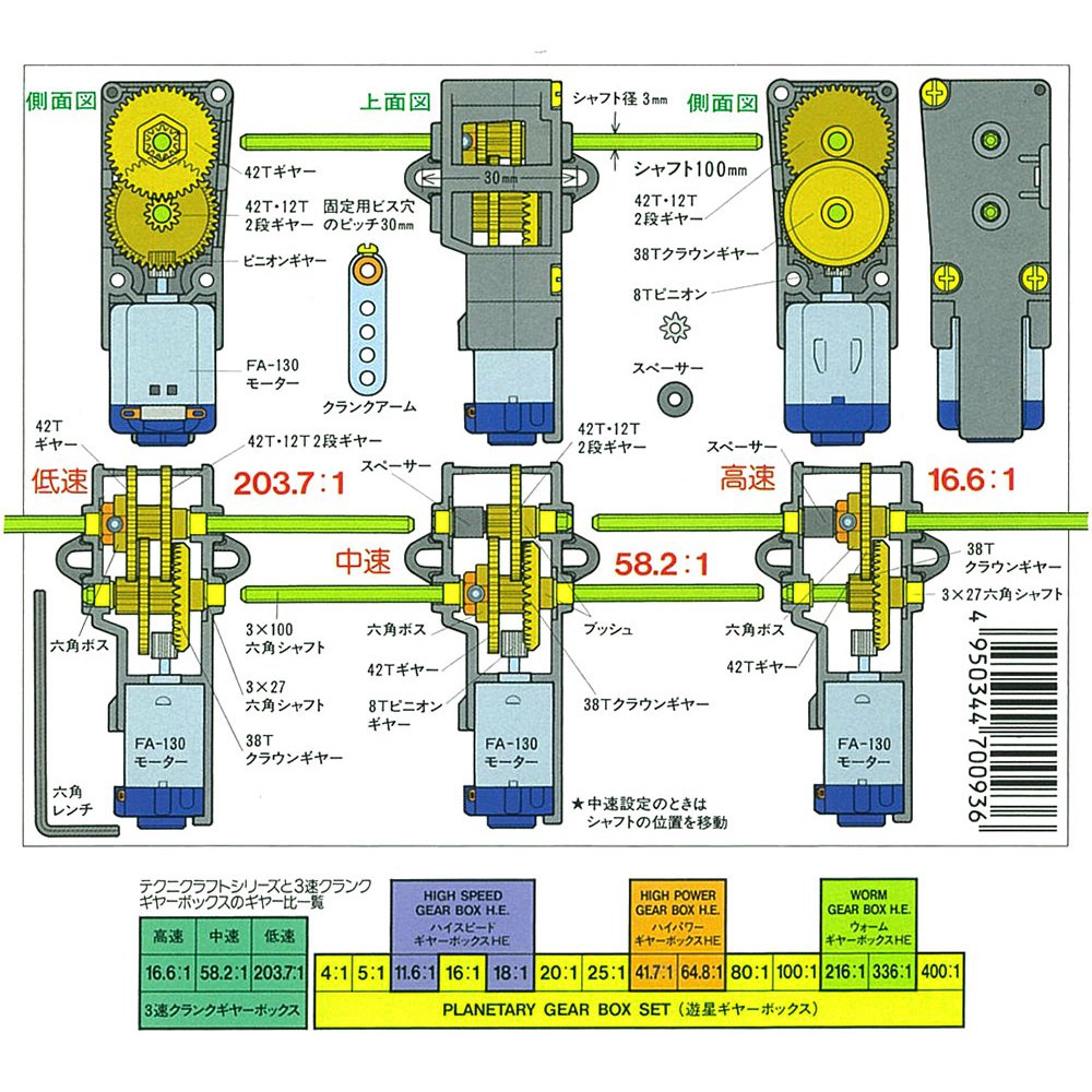 Đây là hộp số lắp ráp có tính năng vận hành êm ái và độ tin cậy cao. Có 3 loại tỷ số truyền, từ công việc yêu cầu vòng quay cao đến công việc yêu cầu công suất. Có thể áp dụng rộng rãi. Ngoài ra, nó có thể được tạo ra để chuyển động độc đáo với tay quay. Bánh răng và vỏ được làm bằng nhựa gia cố để lắp ráp an toàn.