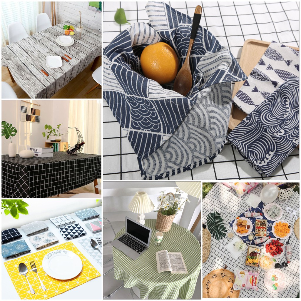 Nhà cửa & Đời sống > Trang trí nhà cửa > Khăn trải bàn || [70cm VIỀN CẠNH] KHĂN VẢI TRẢI BÀN decor góc học tập, bàn ăn. vải bố thô chậm thấm nước họa tiết caro, hoa lá, vintageCòn hàng
