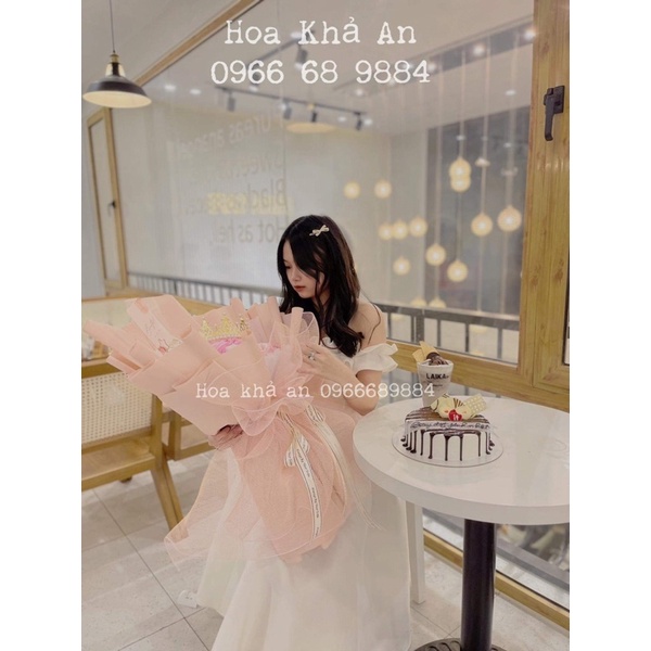 [Giảm 70k Ship] Bó hoa sáp siêu to 40 - 50 bông Vĩnh cửu. Phối giấy Cafin Hàn ko nhăn. Mẫu thiết kế (Có Hoả Tốc)