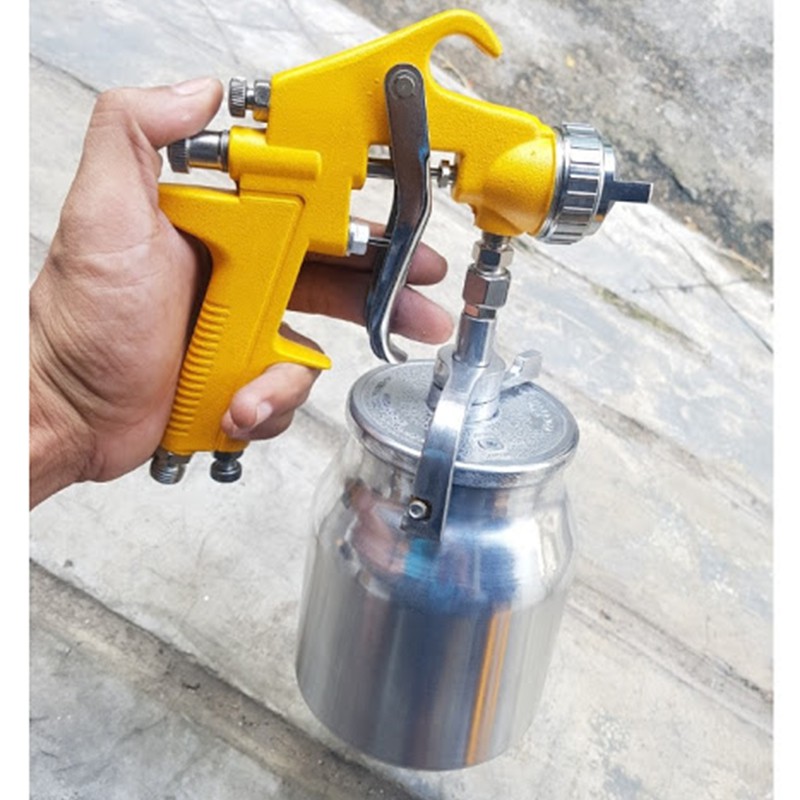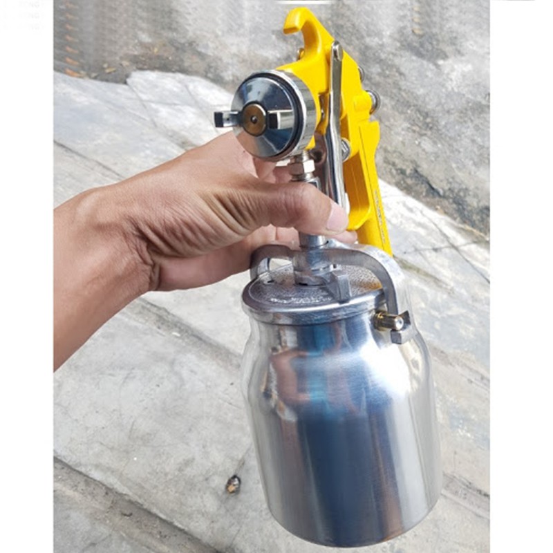 Súng sơn màu vàng kèm theo cốc sơn 1000 ml.
