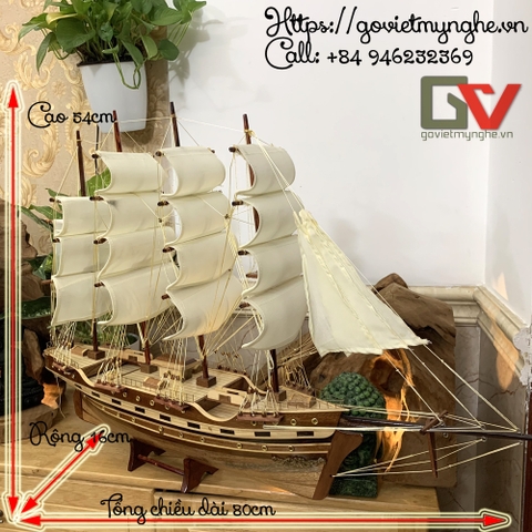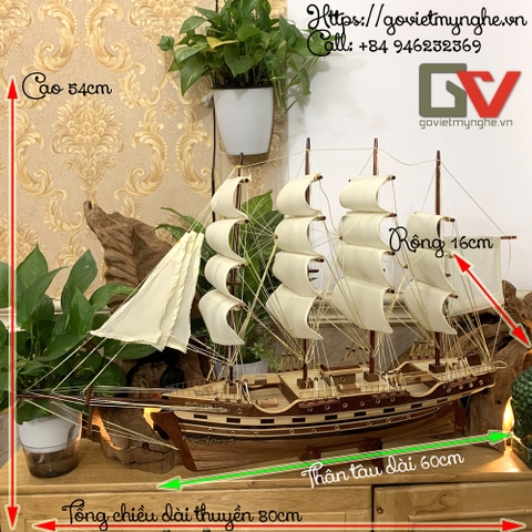 *** Xin lưu ý*** : Kích thước Thân tàu là 60cm. Tổng chiều dài của thuyền là ~80cm. Có sai số do sản phẩm thủ công mỹ nghệ làm bằng tay!