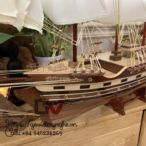 + Mô hình thuyền gỗ khi đóng gói sẽ hạ cột buồm chính xuống. Sau khi nhận hàng, quý khách hàng sẽ giương cột buồm và căng dây buồm.