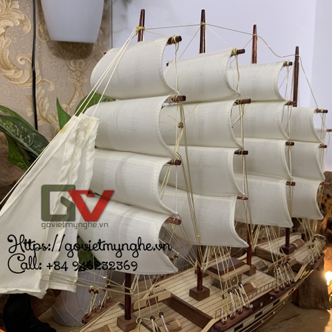 + 01 Mô hình thuyền gỗ thuyền trang trí tàu chở hàng France II - Thân tàu dài 60cm - Buồm màu Trắng Vàng - Gỗ Tràm