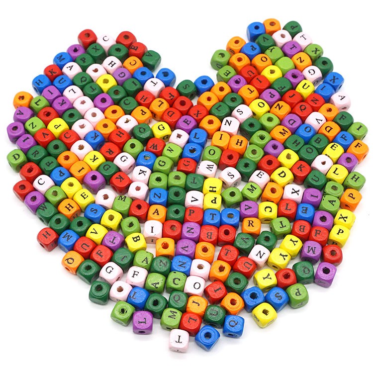 Nhà cửa & Đời sống > Trang trí nhà cửa > Khác || 8/10mm hạt gỗ vuông màu khắc chữ cái tiếng Anh ,phụ liệu xâu hạt xâu vòng đồ chơi thủ côngCòn hàng