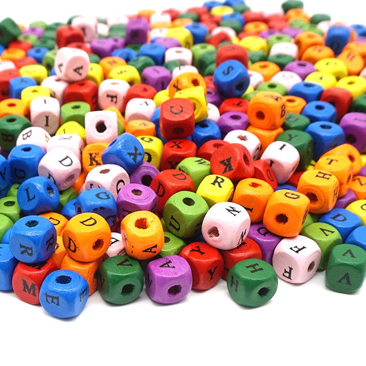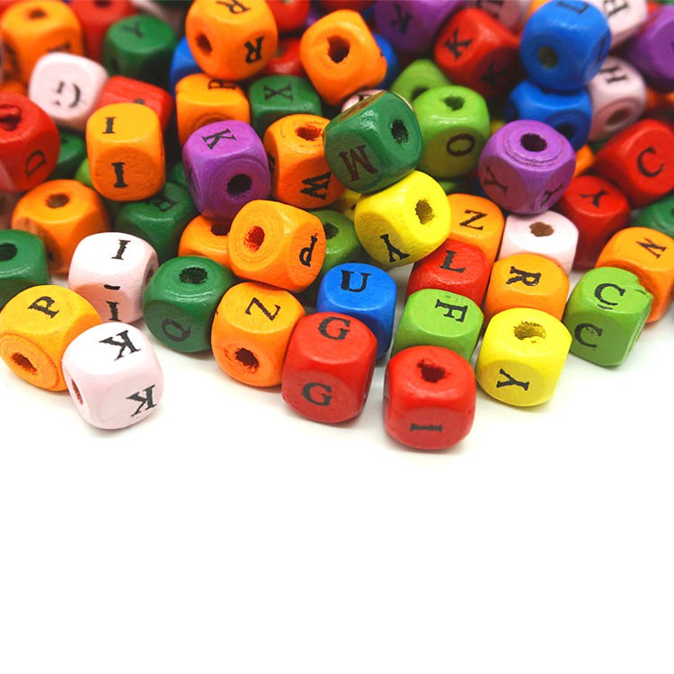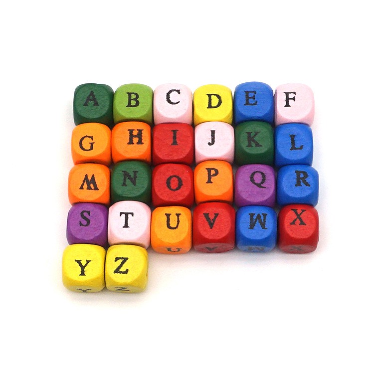 26 chữ cái tiếng Anh hạt vuông hạt gỗ phụ kiện tự làm sáng tạo chữ ABC.Hạt gỗ có dạng hình lập phương có in chữ cái