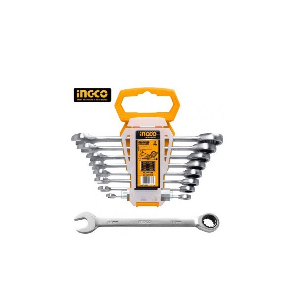 Nhà cửa & Đời sống > Dụng cụ & Thiết bị tiện ích > Dụng cụ > Bộ cờ lê || 8-19mm Bộ 8 cờ lê vòng miệng tự động INGCO HKSPAR1082Còn hàng