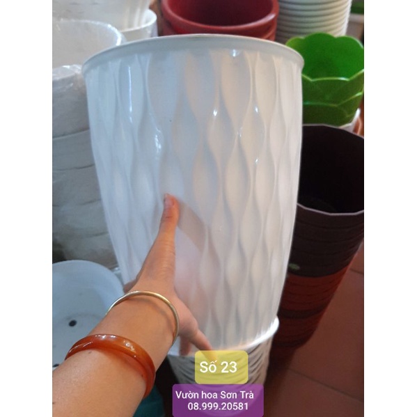 Nhà cửa & Đời sống > Làm vườn > Chậu cây || (Quận 8 - chỉ Hỏa tốc) CHẬU NHỰA CỨNG màu trắng trồng hoa lài, hoa hồng...Còn hàng