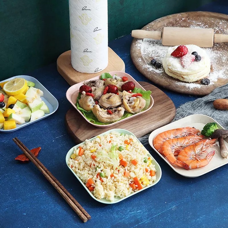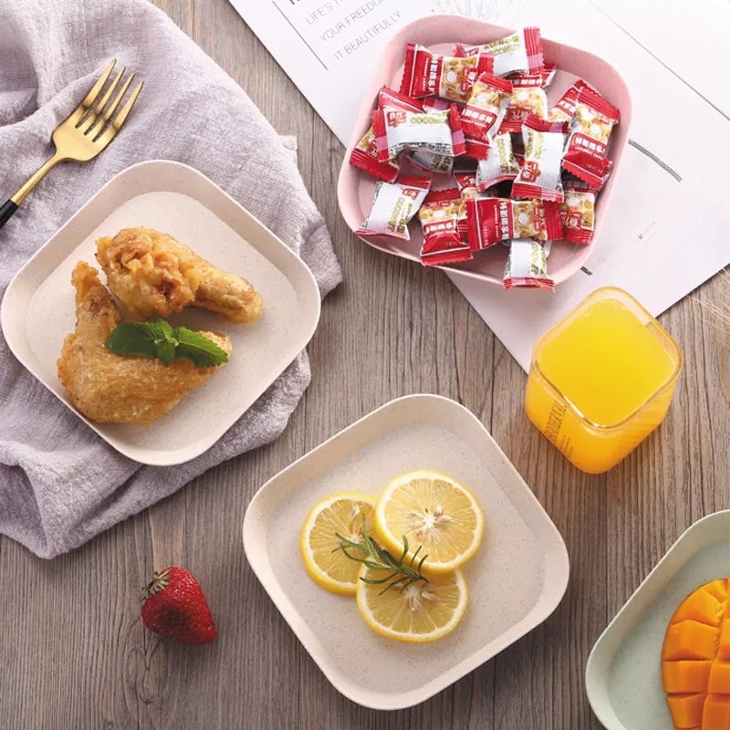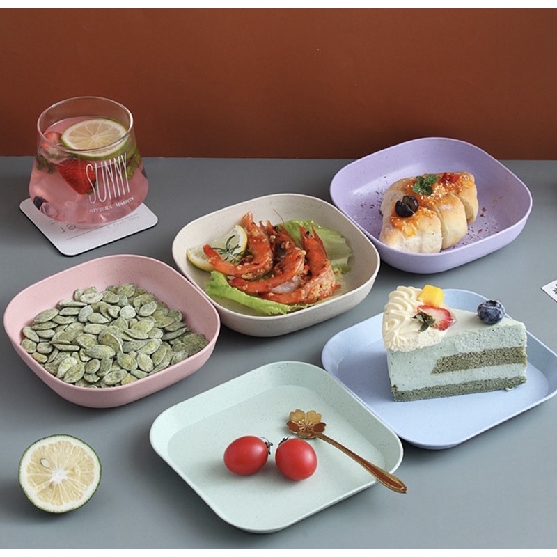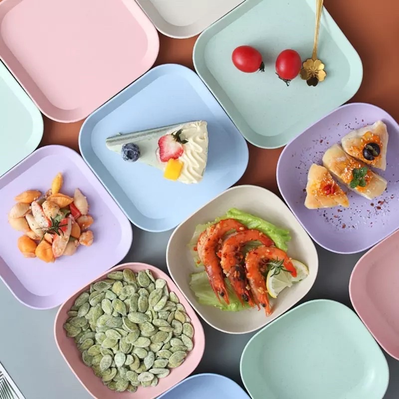 Set 8 đĩa lúa mạch màu pastal siêu xinh, đĩa lúa mạch hình vuông đựng thức ăn, hoa quả, bánh kẹoĐặc điêm nổi bật: