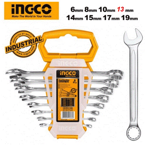 Nhà cửa & Đời sống > Dụng cụ & Thiết bị tiện ích > Dụng cụ > Bộ cờ lê || Bộ 8 cờ lê vòng miệng (6-19mm) ingco HKSPA1088-ICòn hàng