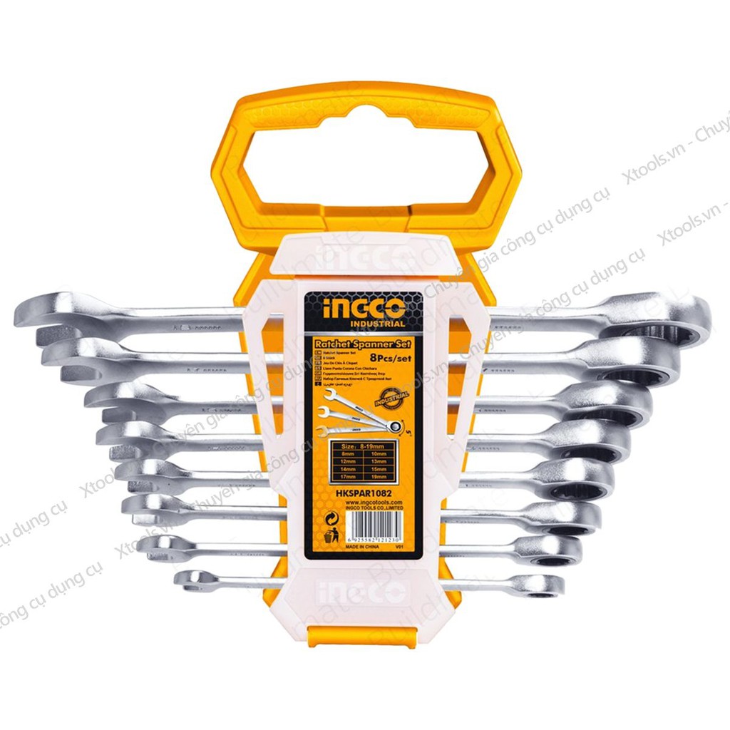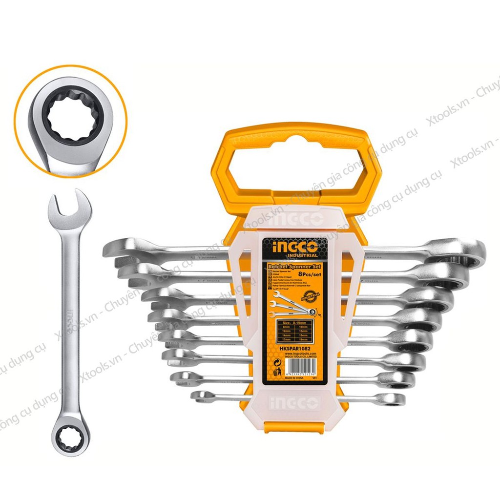 Bộ 8 cờ lê vòng miệng tự động INGCO HKSPAR1082 size 8-19mm dụng cụ cơ khí sửa chữa ô tô xe máy nhà cửa máy móc thiết bị
