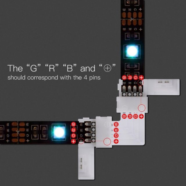 Bộ 8 hộp nối đèn led dây 5050RGB nối tiếp + 4 mạch RGB chữ L