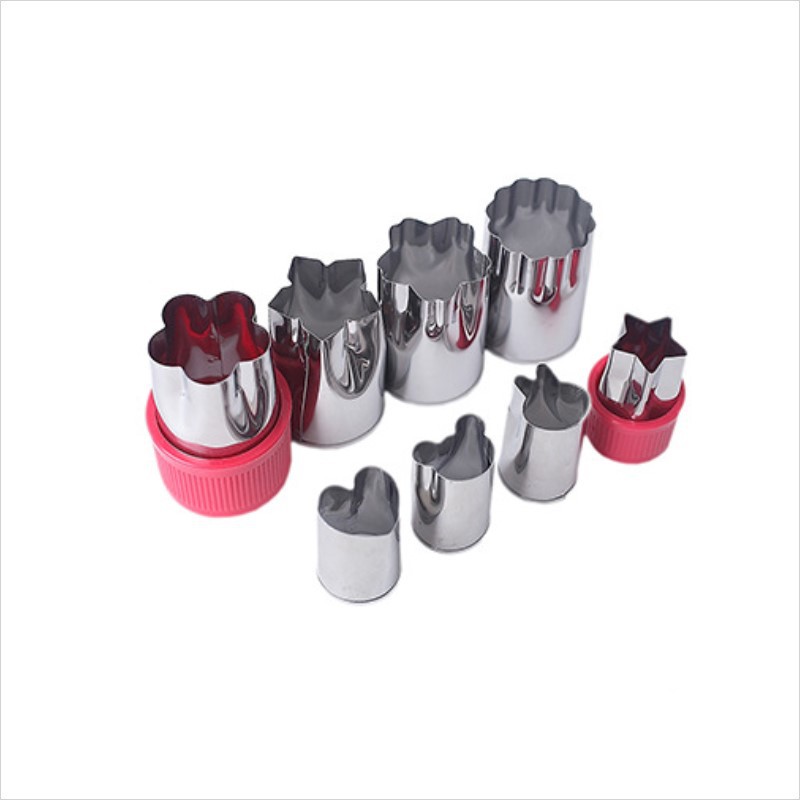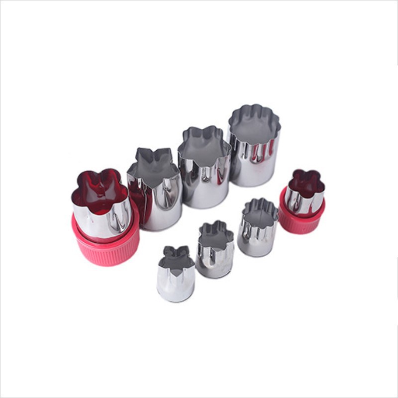 Bộ 8 khuôn cắt rau củ quả bằng inox hình hoa - màu tay cầm ngẫu nhiên