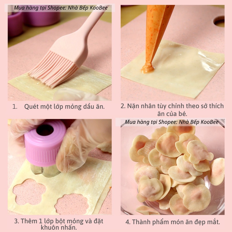 - Tính năng: Dùng để ấn hình các loại hoa trên bánh, rau củ, bột, bánh, nui,...