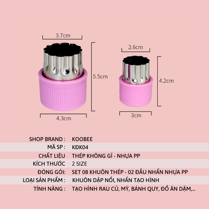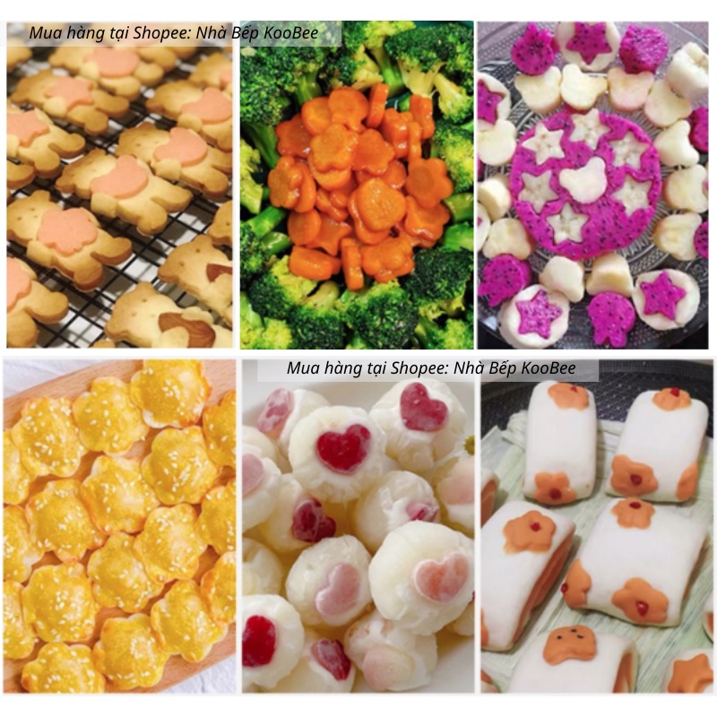 - Bộ khuôn nhấn tạo hình củ quả thích hợp dùng để cắt tạo hình khi làm bánh, rau câu hoặc sơ chế rau củ quả...