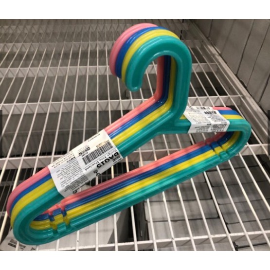 Mắc treo quần áo IKEA được thiết kế màu sắc tiện đẹp và bắt mắt, sẽ hợp với không gian đa sắc màu trong phòng của các bạn bé <3Set móc quần áo cho bé đang sale khá sâu, set gồm 8 chiếc móc làm từ nhựa olypropylene plastic dẻo hạn chế tối đa giòn gẫy, được đánh giá khá cao từ khách hàng của IKEA.