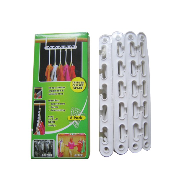 MÓC TREO QUẦN ÁO THÔNG MINH là giải pháp hoàn hảo nhất với những tủ quần áo chật cứng. Nó có thể giúp bạn tiết kiệm được một khoảng diện tích rất lớn trong chiếc tủ nhỏ xinh. Móc còn khéo léo sắp xếp quần áo của bạn một cách ngăn nắp, gọn gàng. Bạn còn có thể dùng móc để treo túi xách, khăn hay cà vạt.Với bộ MÓC TREO QUẦN ÁO THÔNG MINH bạn có thể móc theo chiều ngang hoặc chiều dọc để tiết kiệm diện tích thay vì xếp chúng lại như trước kia.