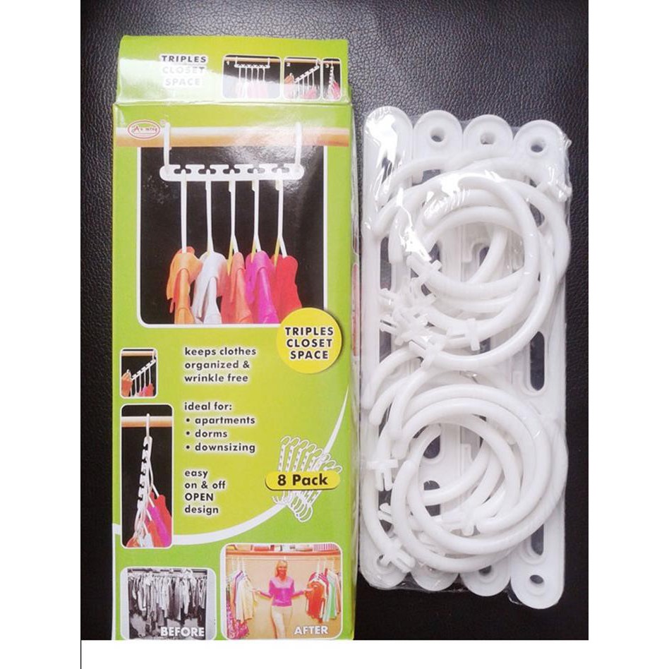 Bộ móc treo quần áo set 8 triples closet spaceMÓC TREO QUẦN ÁO THÔNG MINH giải pháp hoàn hảo nhất với những tủ quần áo chật cứng.