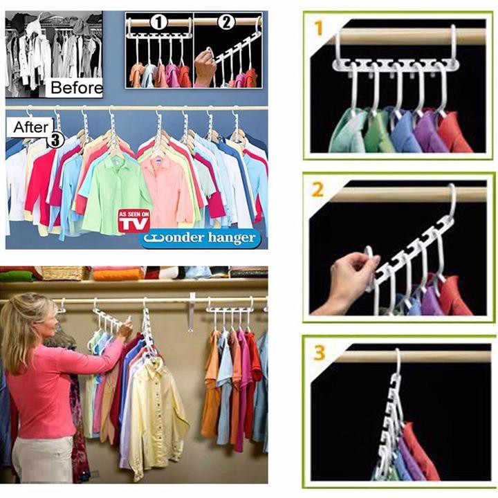 👉 Giải pháp cực hay cho những mẹ có tủ quần áo nhỏ, mà số lượng quần áo lại quá nhiều. Gập lại thì dễ bị nhăn, mà treo lên thì ko đủ chỗ. Với bộ 8 móc treo này, có thể treo được 8x5=40 chiếc quần áo các loại. Nhưng cũng chỉ chiếm chỗ tương đương 8 chiếc móc quần áo mà thôi. Quá tuyệt vời đúng ko?!