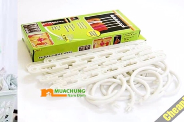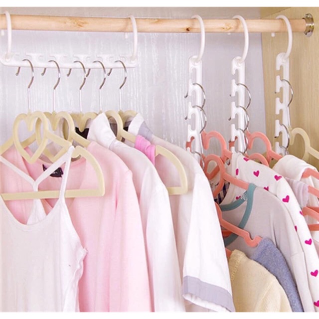 Giải pháp cực hay cho những mẹ có tủ quần áo nhỏ, mà số lượng quần áo lại quá nhiều. Gập lại thì dễ bị nhăn, mà treo lên thì ko đủ chỗ. Với bộ 8 móc treo này, có thể tchiếc quần áo các loại