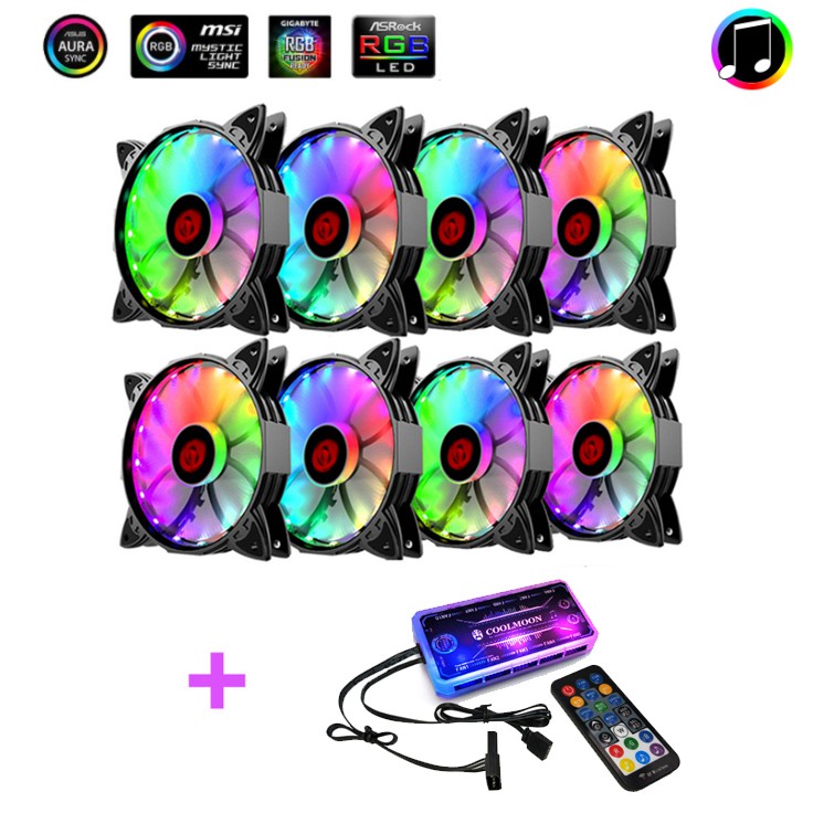 Máy tính & Laptop > Linh Kiện Máy Tính > Quạt và Tản Nhiệt || Bộ 8 Quạt Tản Nhiệt, Fan Case Coolmoon V1 Led RGB - Kèm Bộ Hub Sync Main, Đổi Màu Theo NhạcCòn hàng