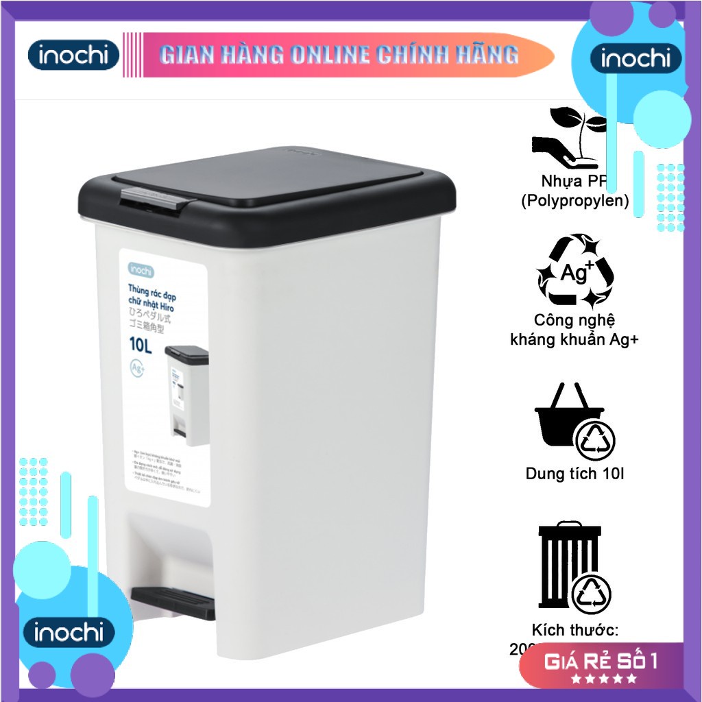 Bộ 8 Thùng Rác Đạp Chân Nắp Đậy Chữ Nhật HIRO INOCHI 10 Lít Làm Gia Đình TRAC10