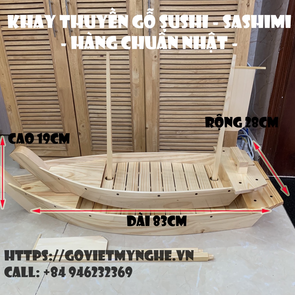 [Dài 83cm - Hàng chuẩn Nhật] Khay thuyền gỗ trang trí món ăn sushi sashimi hải sản cho nhà hàng Nhật - Gỗ thông tự nhiên