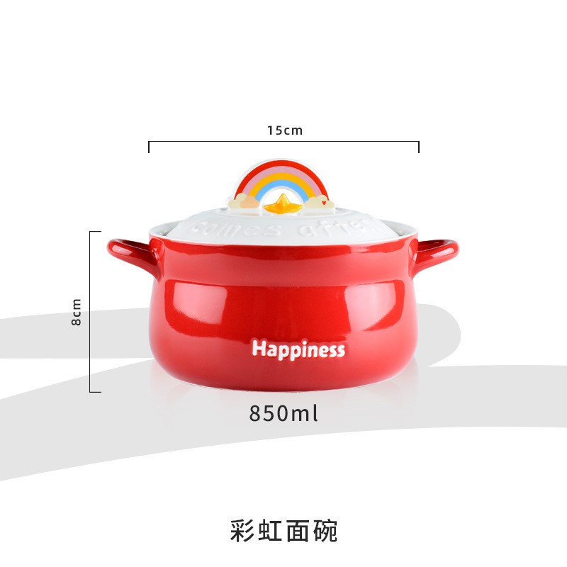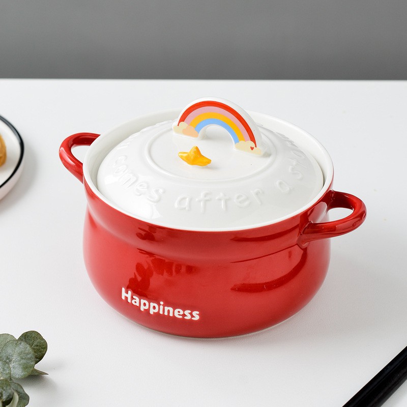 Nhà cửa & Đời sống > Dụng cụ nhà bếp > Nồi || [850ml] Nồi Sứ Nấu Mì Ăn Liền Gốm Sứ Cầu Vồng Happiness Có Giá Đỡ Điện Thoại Di Động - DISICòn hàng