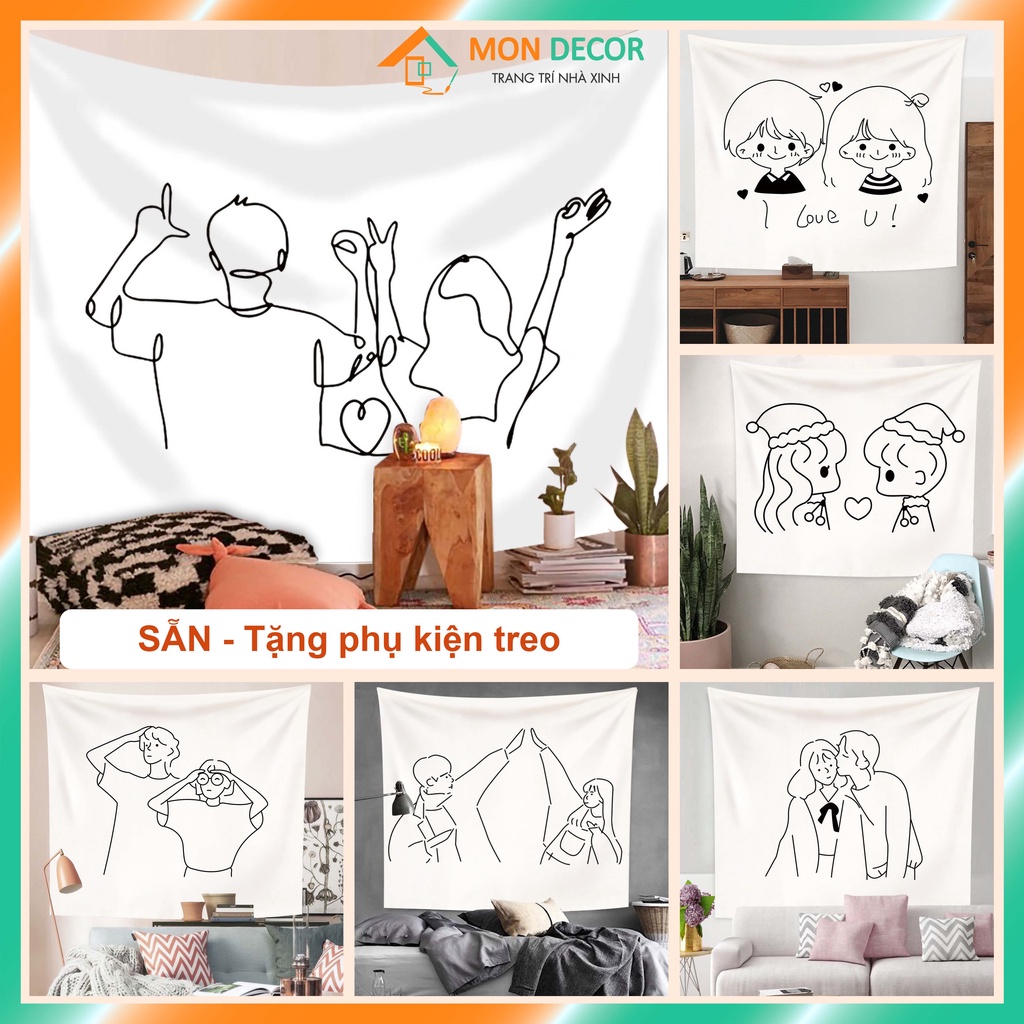 [85k 1m3*1m5 TẶNG móc dán tường + đinh] Tranh vải treo tường trang trí phòng ngủ đáng yêu Tranh thảm treo tường