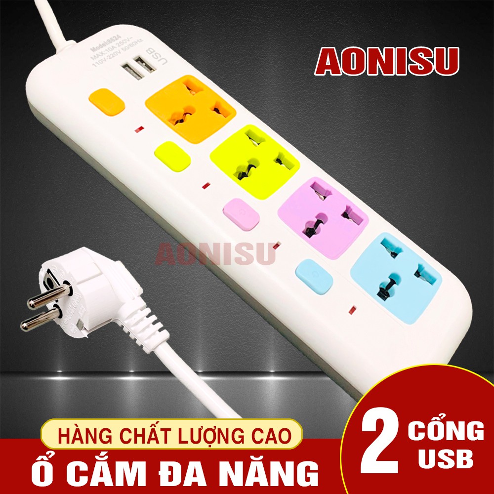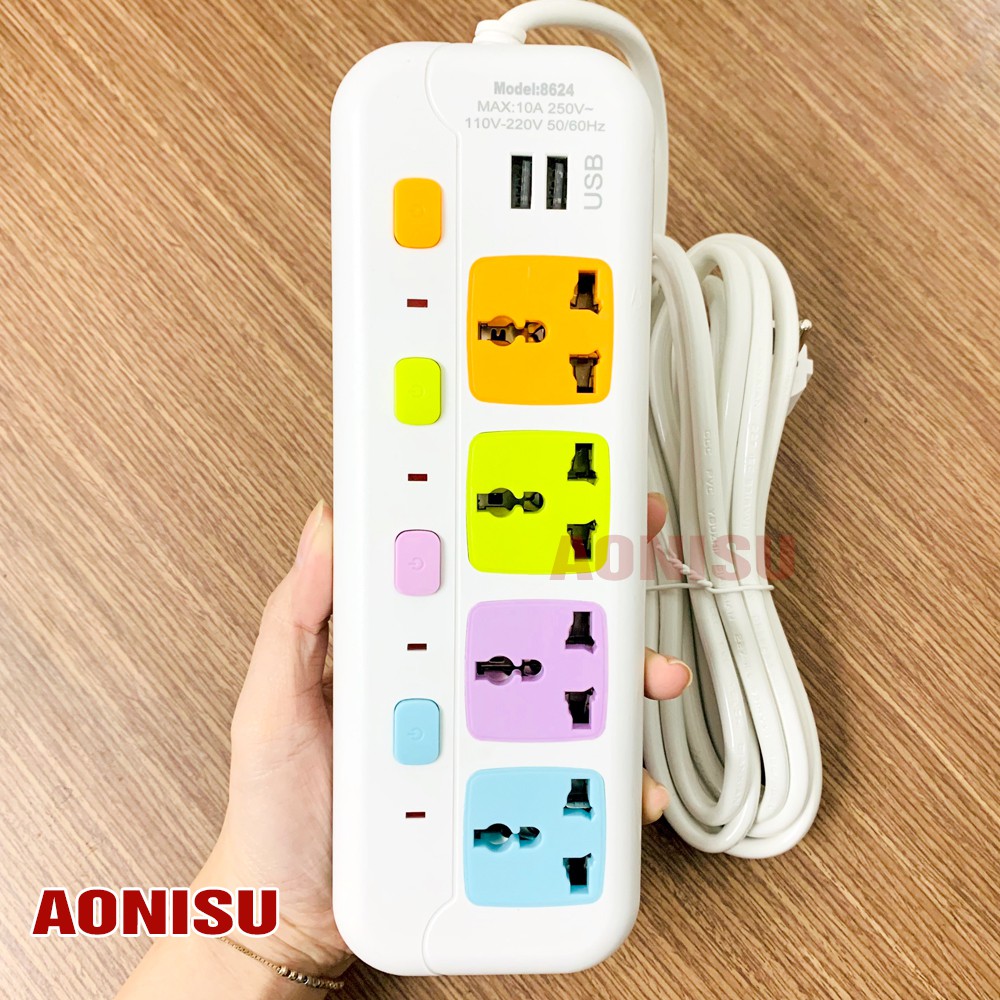 8624 Ổ Cắm Điện Thông Minh 4 Phích , 2 Cổng Sạc , Dây 3 mét , Có Công Tắc - Ổ Cắm Điện Đa Năng,...