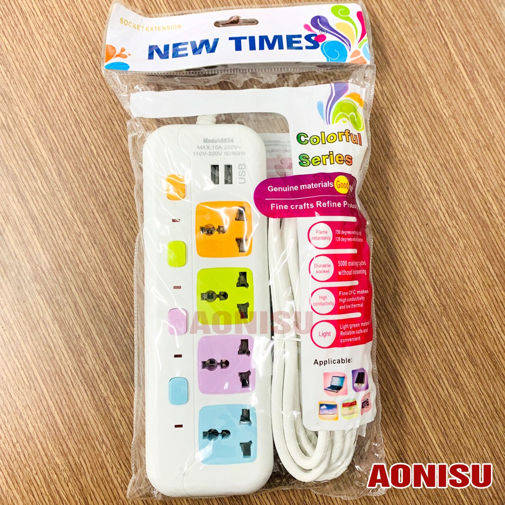 Thiết Bị Điện Gia Dụng > Mạch điện & Phụ tùng > Ổ cắm điện & Dây nối || 8624 Ổ Cắm Điện Thông Minh 4 Phích , 2 Cổng Sạc , Dây 3 mét , Có Công Tắc - Ổ Cắm Điện Đa Năng,...Còn hàng
