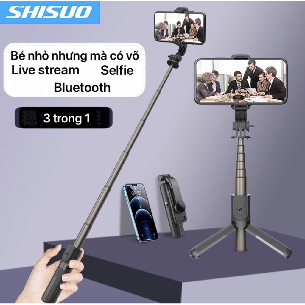 Gậy Selfie Bluetooth Shisuo - Tripod Có 3 Chân Đỡ - Gậy Selfie - Chụp Hình🏆Có Đèn Led Mini