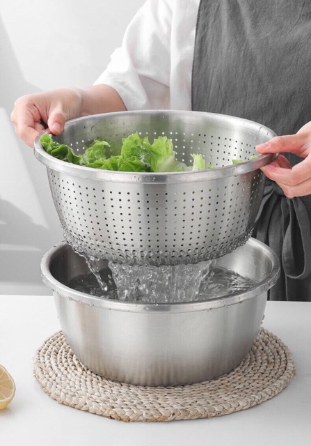 Nhà cửa & Đời sống > Dụng cụ chăm sóc nhà cửa > Chậu, xô & gáo nước || 9 Bộ thau rổ inox 304(Size 18,20,22,24,26,28,30,32,34)Còn hàng