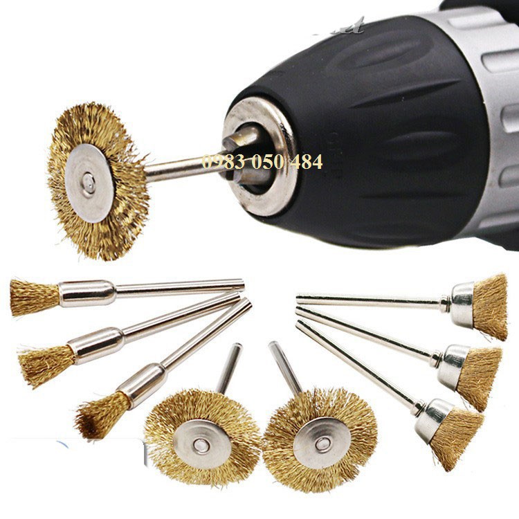 Nhà cửa & Đời sống > Dụng cụ & Thiết bị tiện ích > Dụng cụ > Giấy nhám, máy chà nhám và phụ kiện || Bộ 9 chổi đồng đánh bóng, tẩy gỉ mini trục 3.17mmCòn hàng