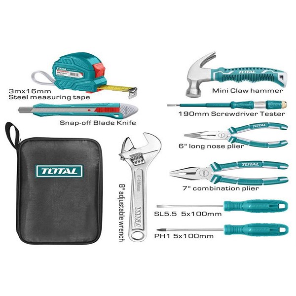 Bộ 9 dụng cụ cầm tay TOTAL THKTHP90096- Bộ 9 dụng cụ cầm tay: Là những món đồ nghề đơn giản như búa, tuốc nơ vít, lục giác, cờ lê mỏ lết…