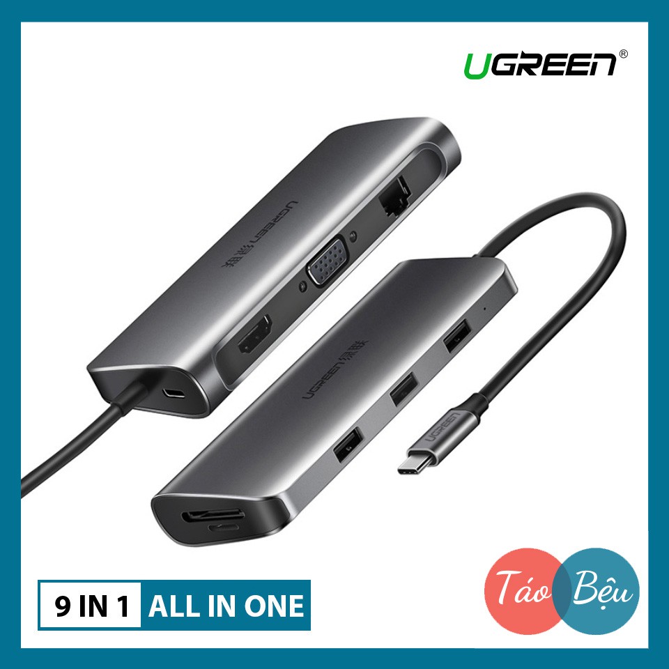 Máy tính & Laptop > Thiết Bị Lưu Trữ > USB & OTG || [Mã 273ELHA100K0 hoàn 7% đơn 500K] [9 IN 1] Cáp Chuyển USB Type C Sang 3xUSB 3.0+HDMI+RJ45+SD,TF Ugreen (40873)Còn hàng