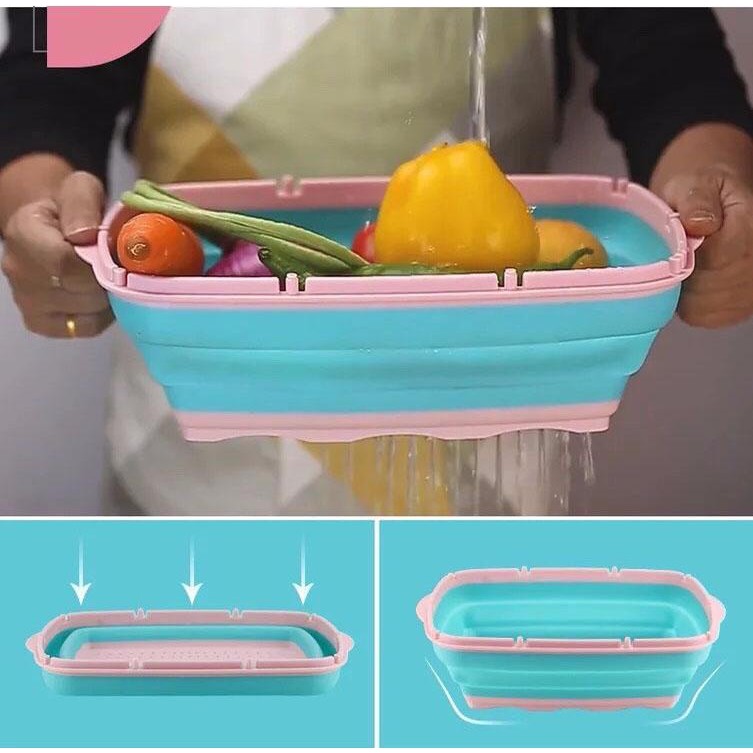 – 2: Giỏ:Dễ thoát nước sau khi rửa rau và rửa trái cây,Có thể gập lại sau khi sử dụng, tiết kiệm không gian