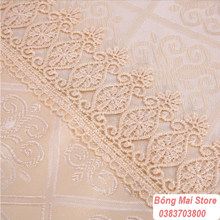 - Chất liệu : vải jacquard dệt nổi, có viền ren, dày dặn chắc tay, bền màu.